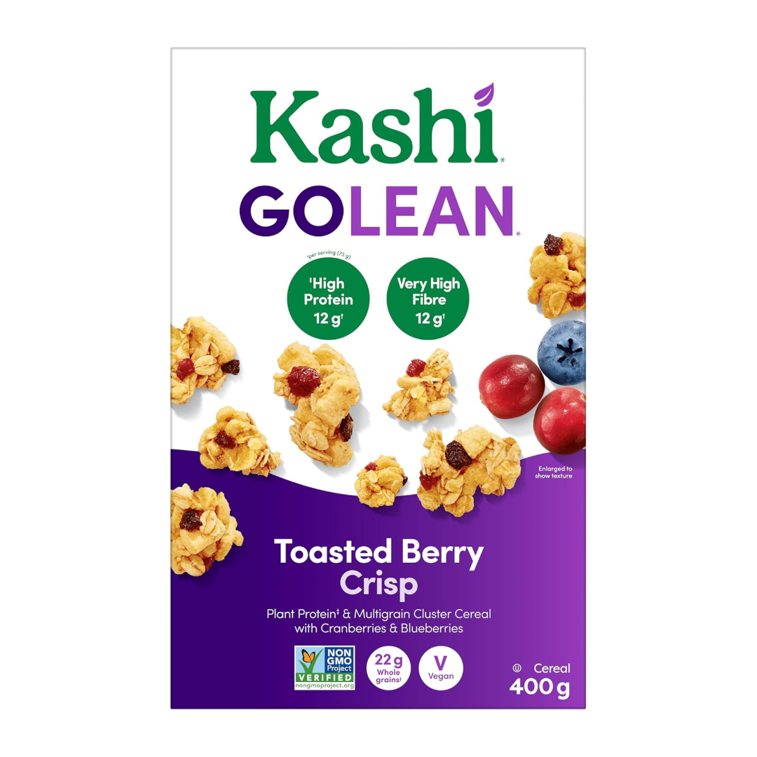 Sugars (cane sugar, brown rice syrup), whole grain oats, soy flakes (soy protein concentrate, corn flour, oat hull fibre, cane sugar, natural flavour), wheat sticks [whole grain whole wheat flour, seven whole grains and sesame flour (whole: oats, hard red wheat, rye, brown rice, triticale, barley, buckwheat, sesame seeds), calcium carbonate], chicory root fibre (inulin), cranberries (cranberries, cane sugar, vegetable glycerin), expeller pressed canola oil, blueberries (blueberries, cane sugar, rice flour, sunflower oil), baking soda, salt, mixed tocopherols (for freshness). Contains: oats, soy, wheat, rye, triticale, barley, sesame